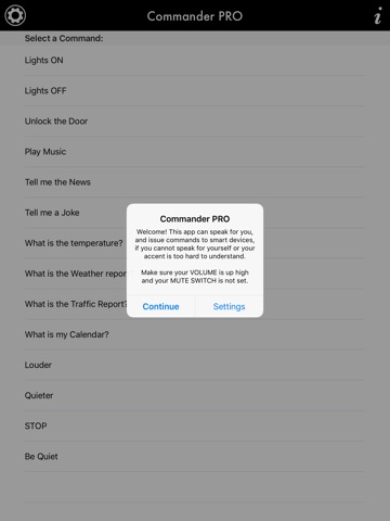 FINALLY! Voice Command is great, but what if you are Non-Verbal, or have a heavy accent? What if Siri and other personal assistants cant understand you? Now there is a solution! Using the COMMANDER app, you can issue voice commands at the touch of a finger! Why speak when your iOS device can speak for you? Choose from assorted commands, and use NIGHT MODE, Male, Female, or Spanish voices (for supported devices!)