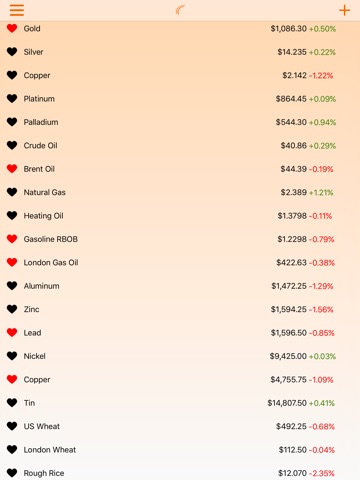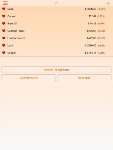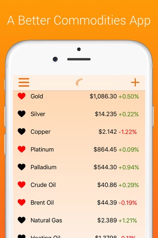 Commodities Prices Live FREE is the best way to track commodities on your iPhone and iPad. Just open the app, and you have a list of all the latest commodities prices. Tap the heart to add a commodity to your watch list. Tap a commodity to see its chart too. What are you waiting for? Download Commodities Prices Live FREE now!