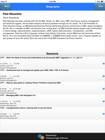 This is the official COMMON Conference and Expo mobile app. Gain immediate access to session schedules, speaker bios, key events, exhibitor information, and much more. Get up to the minute updates on the any session or speaker changes and stay connected with the activity around the conference. Developed in partnership with Profound Logic, the Conference App is the perfect tool to get the most out of your Conference experience.