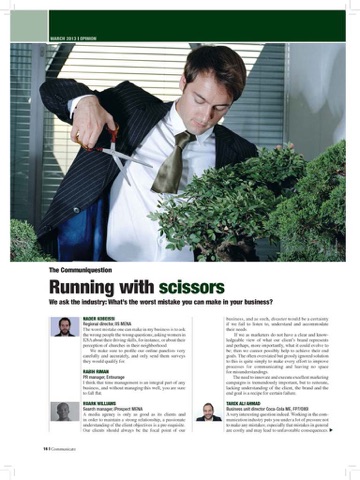 Communicate covers the media, marketing and advertising industries in the Arab world and beyond. Providing exclusive news and in-depth analysis, and published in association with Advertising Age, Communicate goes beyond the facts and figures to bring its readers intelligent insights and cutting-edge ideas along with hard information.