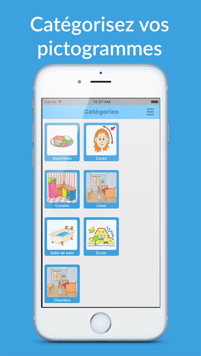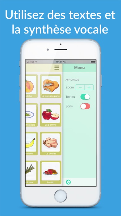 Import pictures from your library or simply use your iPhone’s camera to quickly create your own pictograms and record voices to make it sound !