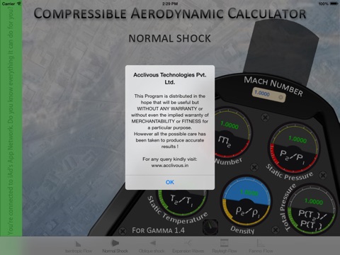 The "Compressible Aerodynamic Calculator" app can be used in various Engineering segments like Aerospace, Mechanical, Chemical, Etc..