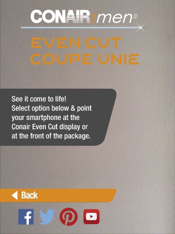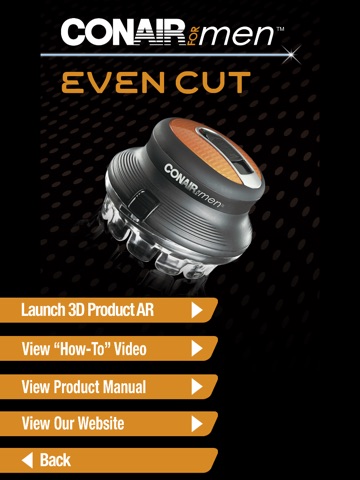 Exclusively from Conair, a leader in innovation, setting the trends for hair styling and grooming appliances in Canada, comes this easy-to-use hair cutting tool! Do it yourself! Using the latest in Augmented Reality technology, this interactive App brings the Even Cut display and packaging to life - virtually! See a 3D model of the Even Cut and open it up to see our commercial. Its like having your own personal digital assistant, helping you 24/7.