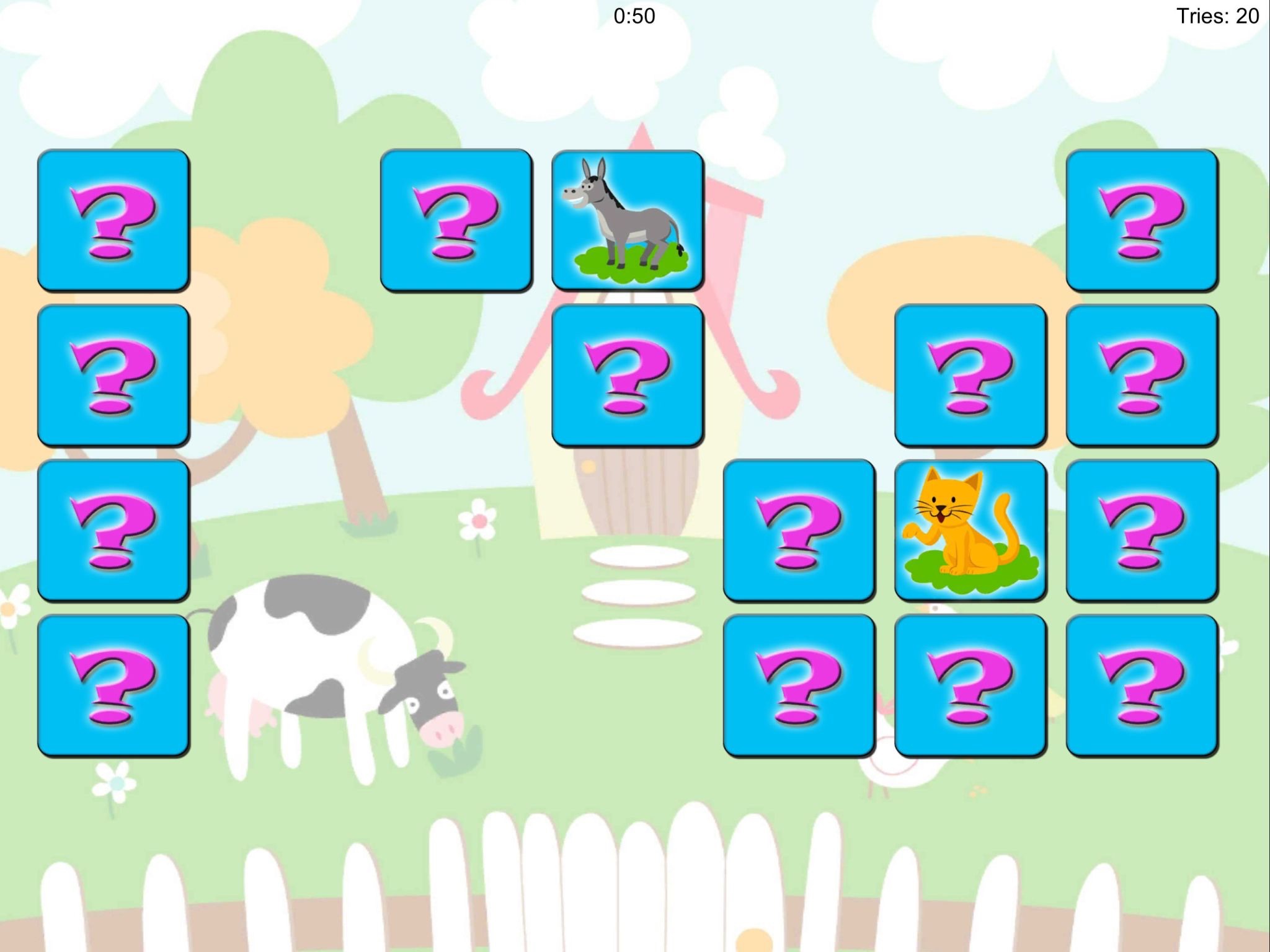 A player is always choosing two cards, which rotates by touching the screen. The player must remember the position of individual animals and always find two identical pictures. The goal is to find as soon as possible all the same pairs of cards.