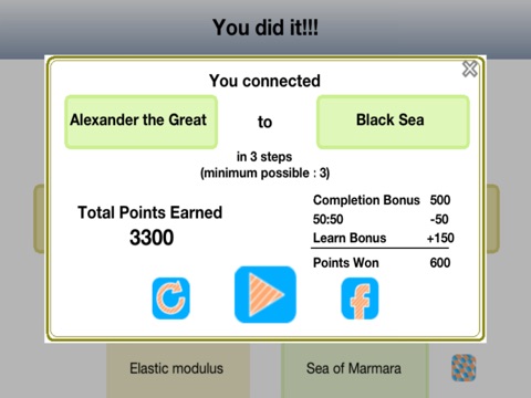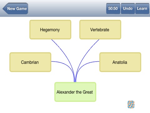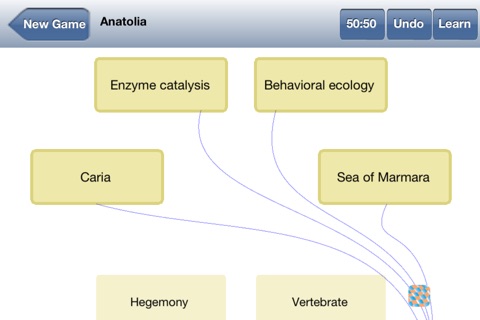 At each stage, you will be offered a set of choices, select the one that seem most appropriate to take you to the end concept. Tap once to select and a second time to confirm and move to the next stage. If you dont know off a particular concept, tap on it once and then hit the ‘Learn’ button to read more about that topic. Play different levels of the game (Easy, Medium, Difficult) to challenge yourself, and win points and progress through achievements.