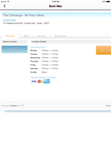 Welcome to The Concierge App! Book service appointments with Max the Mobile Concierge from within the app. Currently available in the Flower Mound, Lewisville and Highland Village Texas vicinity.