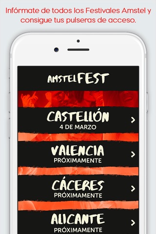 Disfruta ya de todos los detalles de cada festival que Amstel ha preparado para ti en toda España. Además, podrás averiguar qué tienes que hacer y dónde puedes conseguir tus pulseras de acceso para asistir de manera gratuita a cada uno de ellos.