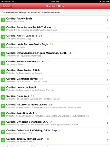 The Conclave app is your home for news and information about the election of the next pope. Watch with the whole Church for the white smoke rising from the Sistine Chapel in the Vatican. Read the best Catholic news and blogs on the topic. Explore the history of the conclave, and the details of how it operates today. Learn more about the Cardinals—those who decide on the new pope, and one of whom will be the new pope. You can even follow the buzz on Twitter. Plug into the conclave and be the first to know about the Church’s new pope.