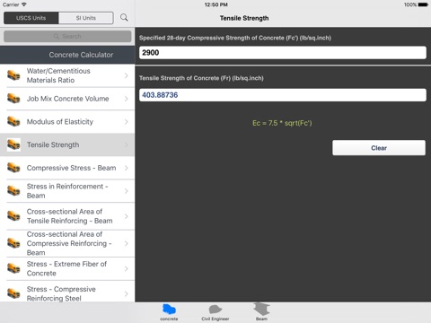 Handy App with each and every details about Concrete and its characteristics.Available in Metric (SI) and Imperial Units (USCS)