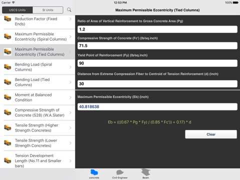 Concrete Engineering Calculator contains 56 Calculators for different Concrete and Civil Engineering parameters with Formulas.