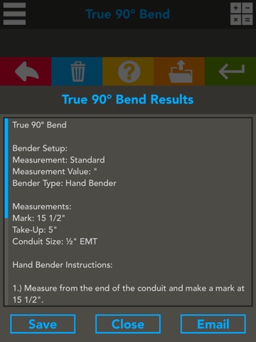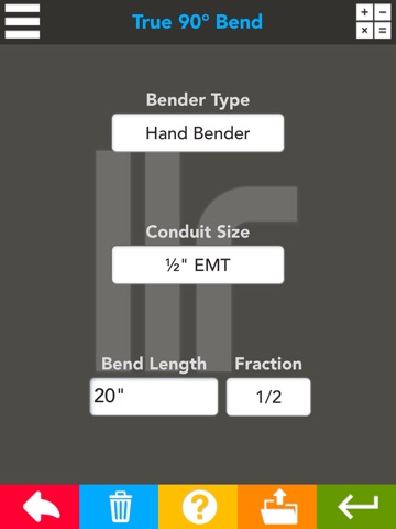 The best conduit bending application on the app store! This application is perfect for the field professional and the office worker. Conduit Bending Helper includes bending calculations for 90 degree bends, back to back 90, offsets, four point saddles, and three point saddles. With three different selectable benders and conduits up to 4", it is easy to see why this application is so great. Includes metric and standard sizes!