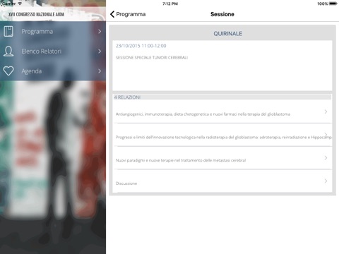 Applicazione per la visualizzazione in tempo reale dei contenuti del XVII Congresso Nazionale dell’Associazione Italiana di Oncologia Medica.