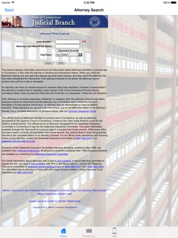 Also, when online this app provides access to the Judicial Branch, including the attorney directory, case look-up, and more.