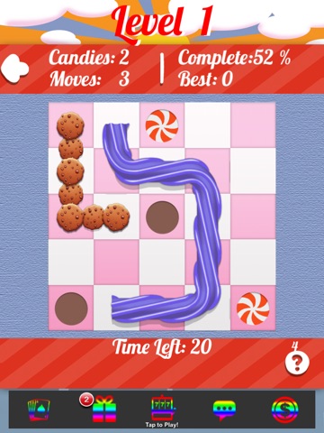 Connect matching candy with pipe to create a flow. Pair all candy pieces, and cover the entire board to solve each puzzle. But watch out, pipes will break if they cross or overlap!
