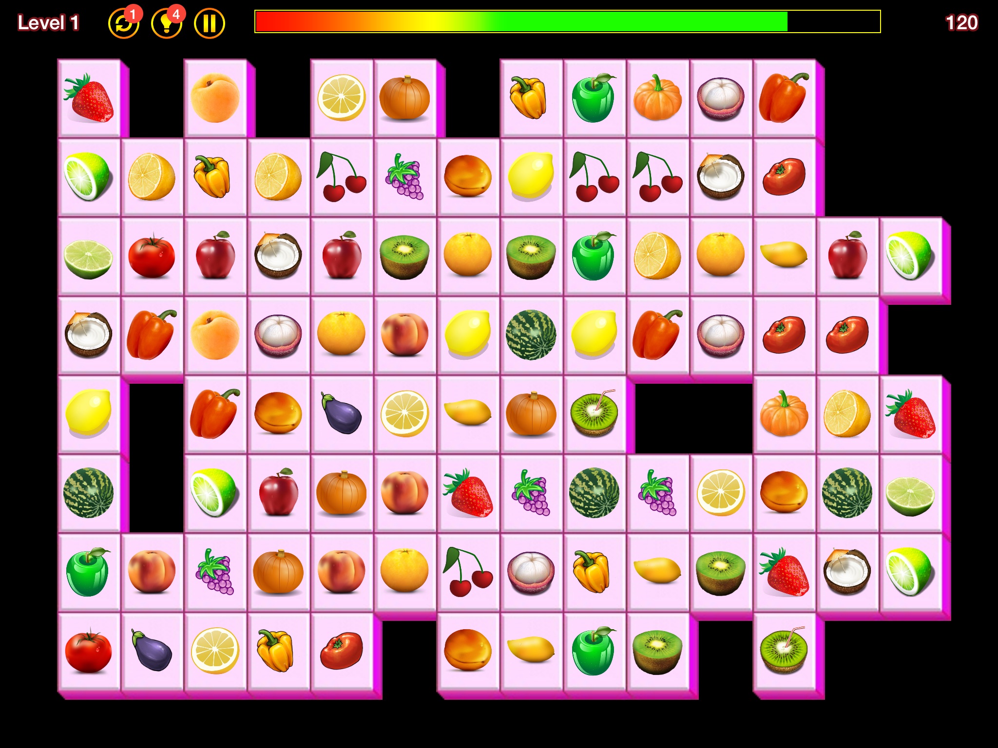 Find the same fruits and match them. Your duty is to clear the board before the times up!