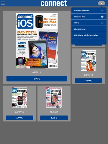 App. Geladen........gestartet....und?nix! Hmmm!? Nur blauer Hintergrund und der Druck in dunkelblau wo connect steht......Absturz. Naja, kann mal vorkommen. So hab ich gedacht. Erst nach dem vierten Neustart endlich die Oberfläche zu sehen. Kurz einen Überblick verschafft und sofort den Heftvorschau ausprobiert. Denkste.......lädt er auch nicht. Lieeeebbbes connect Team!!! Ich hab hier schnell die Rezension geschrieben, einen Stern für die Bewertung abgegeben und App. Gelöscht!!! Wieder nen potenziellen Kunden vergrault.....
