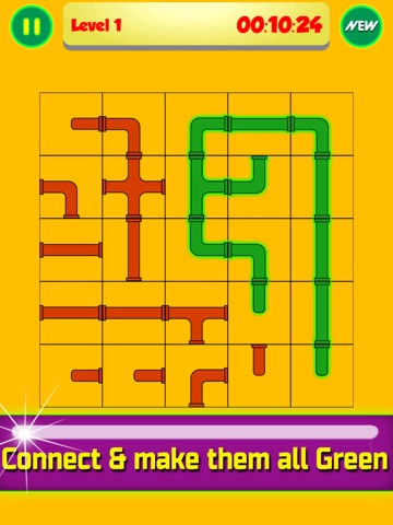 The correct pipe line will glow green to make u assure that you are going on the right way. Make them all green and you are on the next level!!