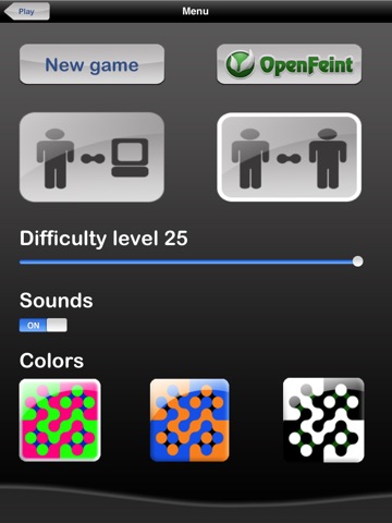 Love the contrasting colors! Makes it easier to see where I should play or where to block the other color. I wish there were levels that slowly increase difficulty instead of manually changing the difficulty. An option to pick the 2 colors