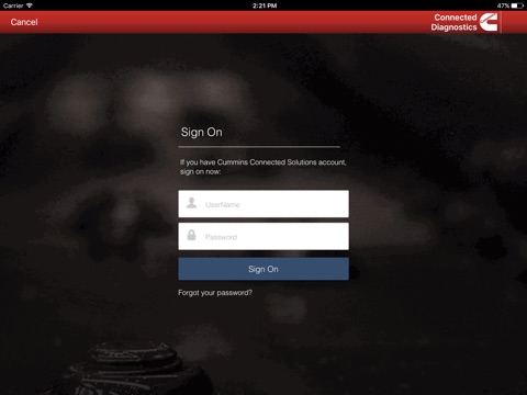 Mobile Connected Diagnostics will operate with commercial Cummins electronic engines and Cummins Agility Natural Gas fuel systems in on-highway, off-highway, marine and power generation applications and is NOT currently compatible with Dodge, Ram or Nissan OEM pick-up truck system electronics.