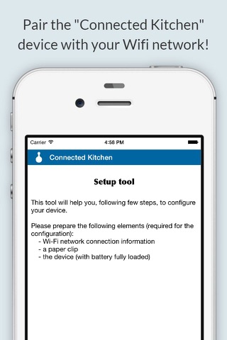 This app should be used to pair the "Connected Kitchen" device with your Wifi network