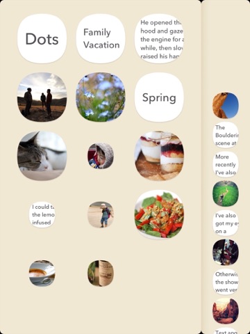 Tap a dot, move from left to right, and begin creating your own connecting dots. Just a few simple gestures and you’ll be ready to bring a new and completely fluid digital tool into your life.