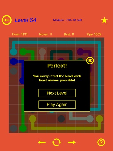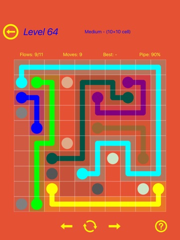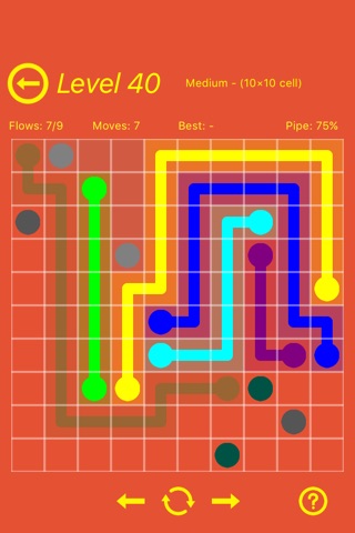 Connect matching colors with pipe to create a flow. Pair all colors, and cover the entire board to solve each puzzle. But watch out, pipes will break if they cross or overlap!