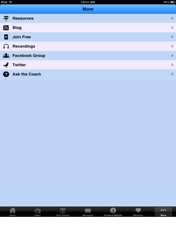 Through this app you can join our Conscious Dating Online Community, access our Facebook Group and Twitter feed, purchase the Conscious Dating book, check out our Virtual Coaching Program, and contact our Mentor Coaches if desired.