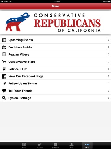Official app of Conservative Republicans of California, a volunteer organization made up of like-minded individuals who believe in limited government, lower taxes, free market capitalism, strong national defense, respect for the Constitution, the right to life, traditional marriage and individual liberty.
