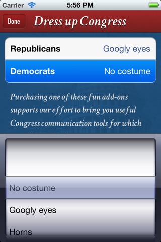You can also dress up your representative by purchasing one of our fun add-on costumes to support our efforts to bring you useful Congress communication tools for which we will NEVER charge.