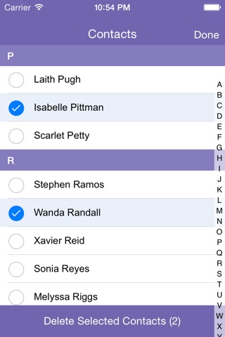 - Quickly and easily select and delete multiple contacts