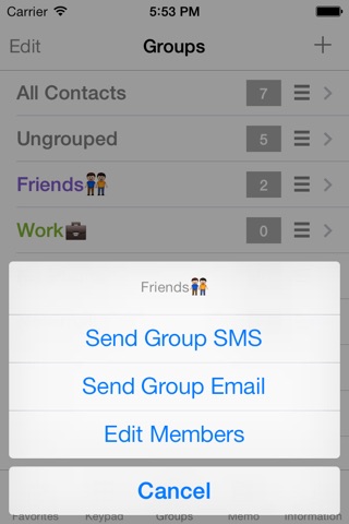 機能的にはまずまずなのですが、グループ登録の方法が煩雑で融通も効かないため、使いづらい設計です。 ひとつの連絡先に複数のグループを割り当てられるのは良いと思います。