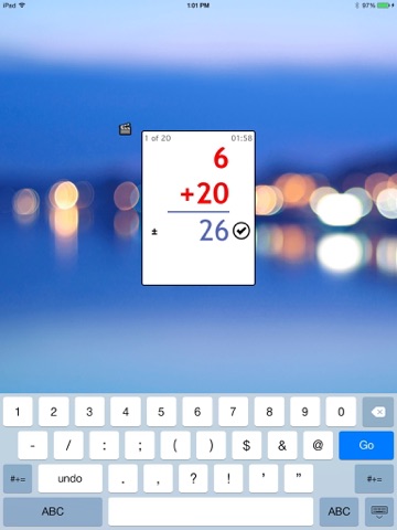 A flexible math flash card app, suitable for any level from early elementary to advanced. Pick a combination of operators (+ - × ÷) and a range of numbers (-999 to 999). Set a time limit or a number of cards. See your results in a detailed report.
