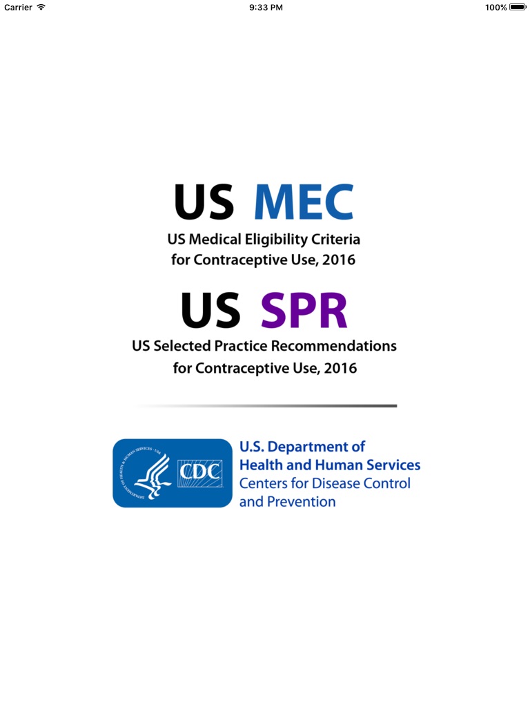 The U.S. Medical Eligibility Criteria for Contraceptive Use comprises recommendations for the use of specific contraceptive methods by patients who have certain characteristics or medical conditions. The U.S. Selected Practice Recommendations for Contraceptive Use addresses a select group of common, yet sometimes controversial or complex, issues regarding initiation and use of specific contraceptive methods. The app is developed directly from the CDC Morbidity and Mortality Weekly Report (MMWR) by the Division of Reproductive Health and covers more than 60 characteristics or medical conditions (U.S. MEC) and numerous clinical situations (U.S. SPR). These recommendations are intended to assist healthcare providers when they counsel women, men, and couples about contraceptive method choice and use. Although these recommendations are meant to serve as a source or clinical guidance, healthcare providers should always consider the individual clinical circumstances of each person seeking family planning services.