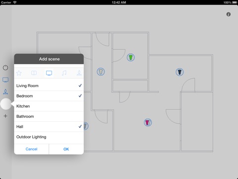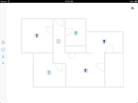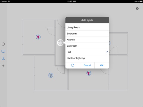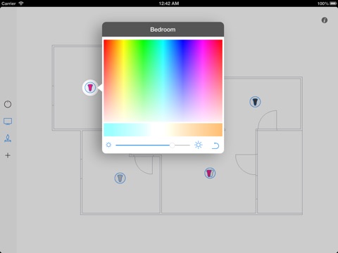 Upload your floor plan from the camera roll, place your bulbs on it, and easily control the lights of your Philips Hue lighting system.