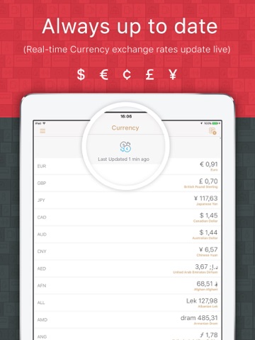 • Automatic currency exchange rate refresh (small data use, 1-2kb)