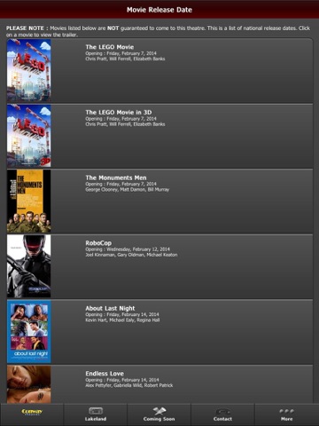 The official showtimes app for Conway Theatres located in Woodruff and Eagle River Wisconsin. Receive showtimes, upcoming release information and special announcements only available to our APP users!