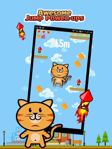 Cookie Hungry Cats Jump - a simple free addictive adventure packed cat jump game. Help this smart cats jumping from one platform to the next, picking up delicious cookies, avoiding obstacles and grabs the jump booster. Tap with your finger left or right to make the Angela jump on the platform.