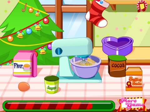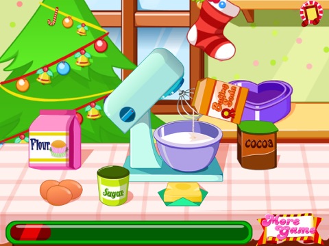 Hi, cold, snow, the smell of hot chocolate, warm clothes, carols, the smell of cakes and of the Christmas tree, joy and many lights are just some of the things that foretell the coming of the most beautiful holidays. This holiday is wonderful it makes us all to be better and happier. For Christmas we all want to be better and our efforts are normal things when we want to bring happiness in ones life. What are you doing for Christmas? Surely you spend Christmas with your family and enjoy the presence of all your friends. You have prepared gifts for everyone? If you have done this then it means youre a good kid and a responsible one and you will help us with a very important thing. This Christmas game for children is one that gives you the opportunity to help us around the holidays. We need you to prepare the best chocolate cake for our family. Do you help us you through this kids game for Christmas? If you want to be our help today then you should know that we will offer you our help and all the instructions that you need.
