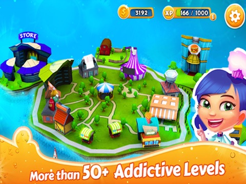 • EXPLORE a fully 3D world filled with happy customers and colorful scenery!