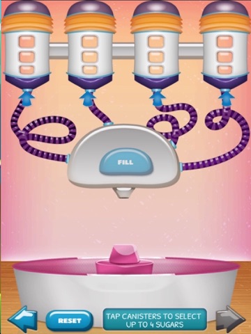 First, choose the candy sugar and rod you want to use. You will be given a variety of color flavors and options. Once you have your rod and your candy sugar mix, its time for the Cotton Candy Machine. Pour in your sugar mix and start collecting your yummy candy floss with the rod.