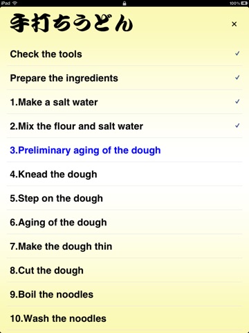Ingredients of udon are only three "flour", "water" and "salt". How to make is simple. You can make a real handmade udon easily at home by the navigation of this app.