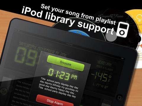 NOTE: iPod Music alarms will play when the application is kept open. A built-in sound (Old-Old Phone by default) will play when the application is closed using local notifications.