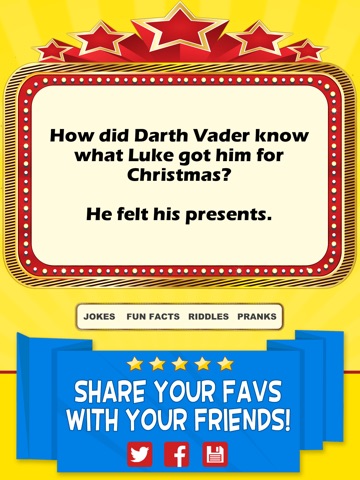 You can even save jokes as your favorites and share jokes on Facebook and Twitter.