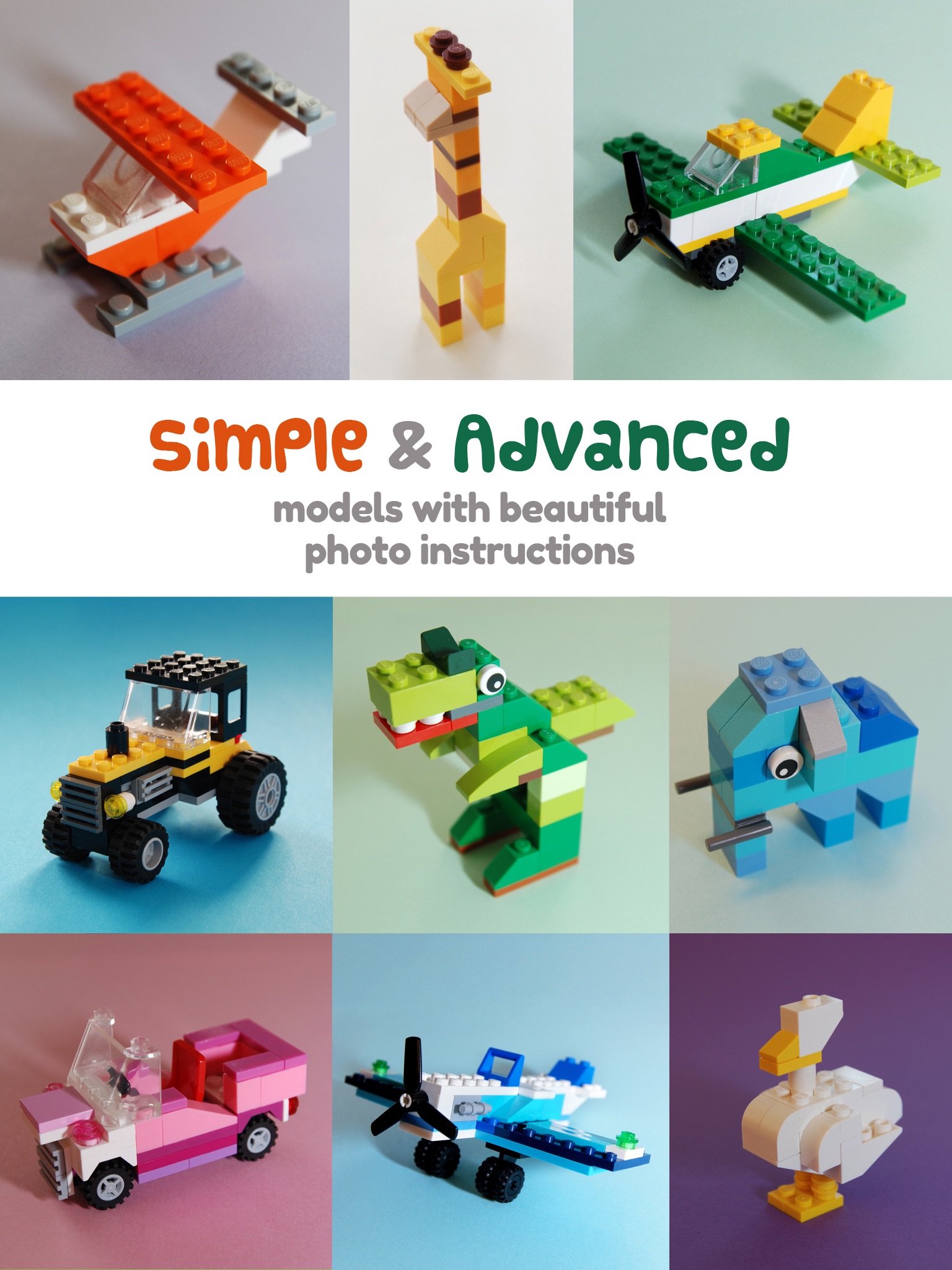 Get inspired and build cool Lego models following step-by-step photo instructions. Using mostly basic parts you already have, you can build simple or more advanced models that just look great. If you don´t have the exact parts, don´t be afraid to adjust the models with parts or colors you can find.