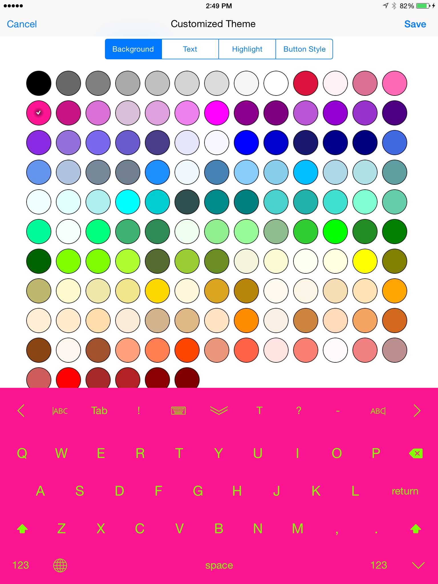 10. Decorating your keyboard with different colors, you can change the background color, the text color, the highlight text color and the button style.