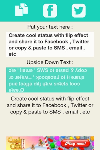 Create cool status with flip effect and share it to Facebook , Twitter or copy & paste to SMS , email , etc