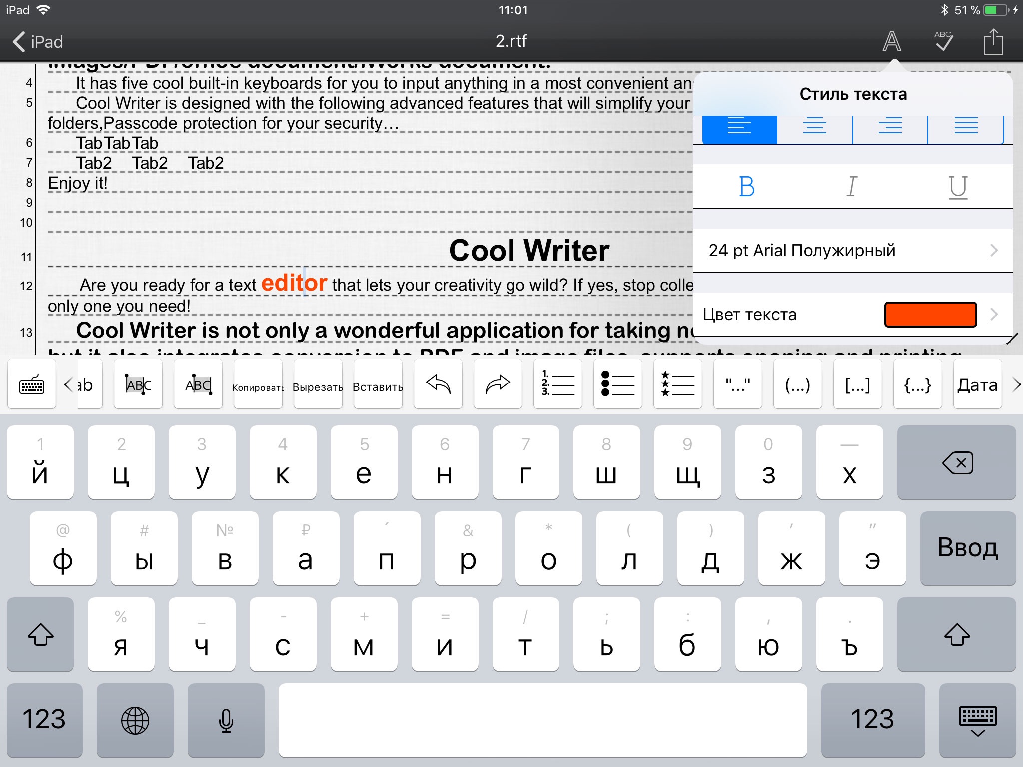 CW is not only a wonderful app for taking notes, writing and editing text, it also integrates conversion to PDF and image files, supports opening/printing most common file types. It comes with five cool built-in keyboards for you to input anything in a convenient and fun way: