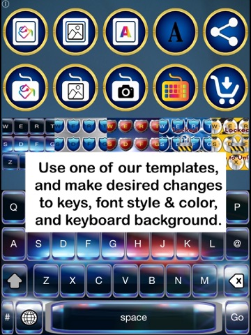 For those who "Serve & Protect" and those who respect and honor them: Cop Keys enables you to customize your iOS keyboard, using our custom-themed keys, backgrounds and templates. Modify our templates by changing key colors, font styles and colors, and background colors, or upload a background image from your devices camera or gallery.