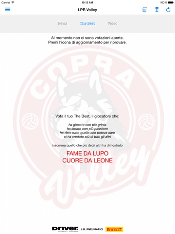 LPR Volley é lapplicazione ufficiale della LPR Volley Piacenza. Grazie a questa app puoi sempre rimanere in contatto con la tua squadra ricevendo tutte le news, i video e partecipando ai concorsi. Ad esempio per le partite al Palabanca potrai votare il giocatore che in ogni partita ha avuto piú "FAME DA LUPO E CUORE DA LEONE".