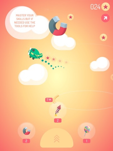 Do you love challenges and addictive games? “Copter Lift” is just for you. Easy to learn, but hard to master. Get as high as possible and don’t forget to collect all the stars. Copter will change the direction immediately after touching a star. Looks easy? Wait a moment, not only interesting levels and hard twists are waiting for you. Winds and rains will make your journey more interesting. 50 levels to achieve and 3 aircrafts to unlock for the main goal. Later we will add more aircrafts and levels, but now take a challenge with your friends, collect all badges such as “Death finger”, “Vampire nights”, “Racer”, etc. and show to all of us how strong you are. But if you struggle, grab the tools to help you.